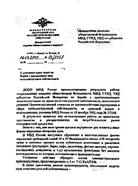 ДООП МВД России проанализированы результаты работы подразделений милиции общественной безопасности МВД, ГУВД, УВД субьектов Российской Федерации по борьбе с противоправными посягательствами на права интеллектуальной собственности, выполнению решений Правительственной комиссии по противодействию нарушениям в сфере интеллектуальной собственности, ее правовой охране и использованию, указания МВД России от 18 Декабря 2002 года№ 1/7548.