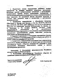 Приложения: 1. Региональные представительства Российского авторского общества (РАО) на 8 листах. 2. Региональные представительства Российского общества по управлению правами исполнителей (РОУПИ) на 3 листах. исп. Родин А..Ю. тел. 239-73-91