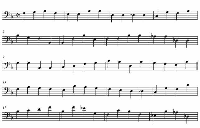 Еще один пример партии Рэя Брауна из пьесы «Blues For Alice» Чарли Паркера ([2], стр. 110). «Шагающий бас» виден с первого взгляда.