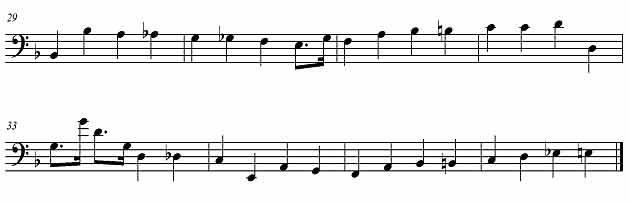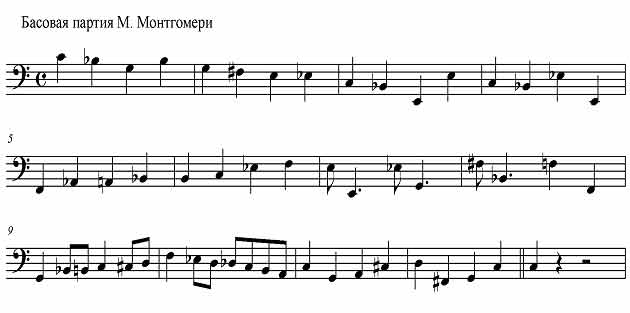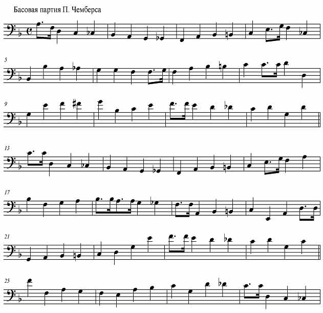 Аккомпанемент типа «шагающий бас» стал основой для создания джазовой басовой линии этого периода развития музыки. Такую линию мы можем увидеть и у других контрабасистов того времени ([4], стр. 124-125):