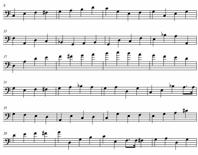 Одна из самых популярных пьес периода свинга, «C Jam Blues» Дюка Эллингтона ([1] стр. 5), начинается контрабасовым соло, в котором как бы показывается тот характер аккомпанемента, та оркестровая роль, что будет удерживаться на протяжении всей пьесы.
