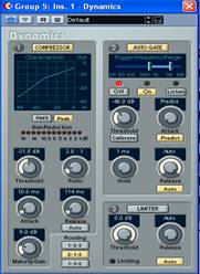 Наиболее часто используемой при сведении обработкой является компрессия. Цель компрессии – понизить динамический диапазон сигнала, записанного на треки, и таким образом устранить сильные перепады громкости, повысить разборчивость инструмента. Применительно к нашему случаю сведение производилось в программе Cudase SX 3. Соответственно, приборы для компрессирования звуковых сигналов применяется в режиме вставки (Insert), только для тех треков, для которых она нужна.